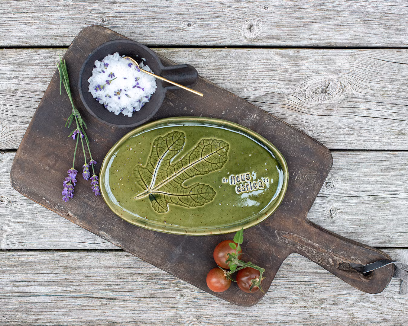 I leran har jag kavlat in ett fikonblad och tryckt det latinska namnet, "ficus carica".